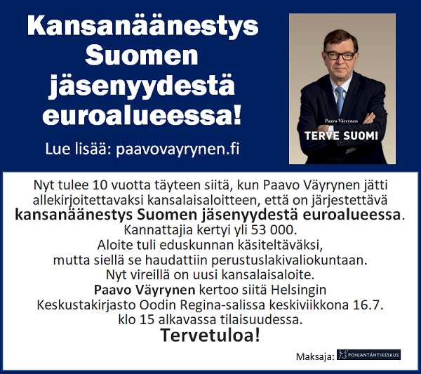 Julkaisin eilisaamuna blogin ”Suomen jäsenyydestä euroalueessa on vihdoinkin järjestettävä kansanäänestys”.